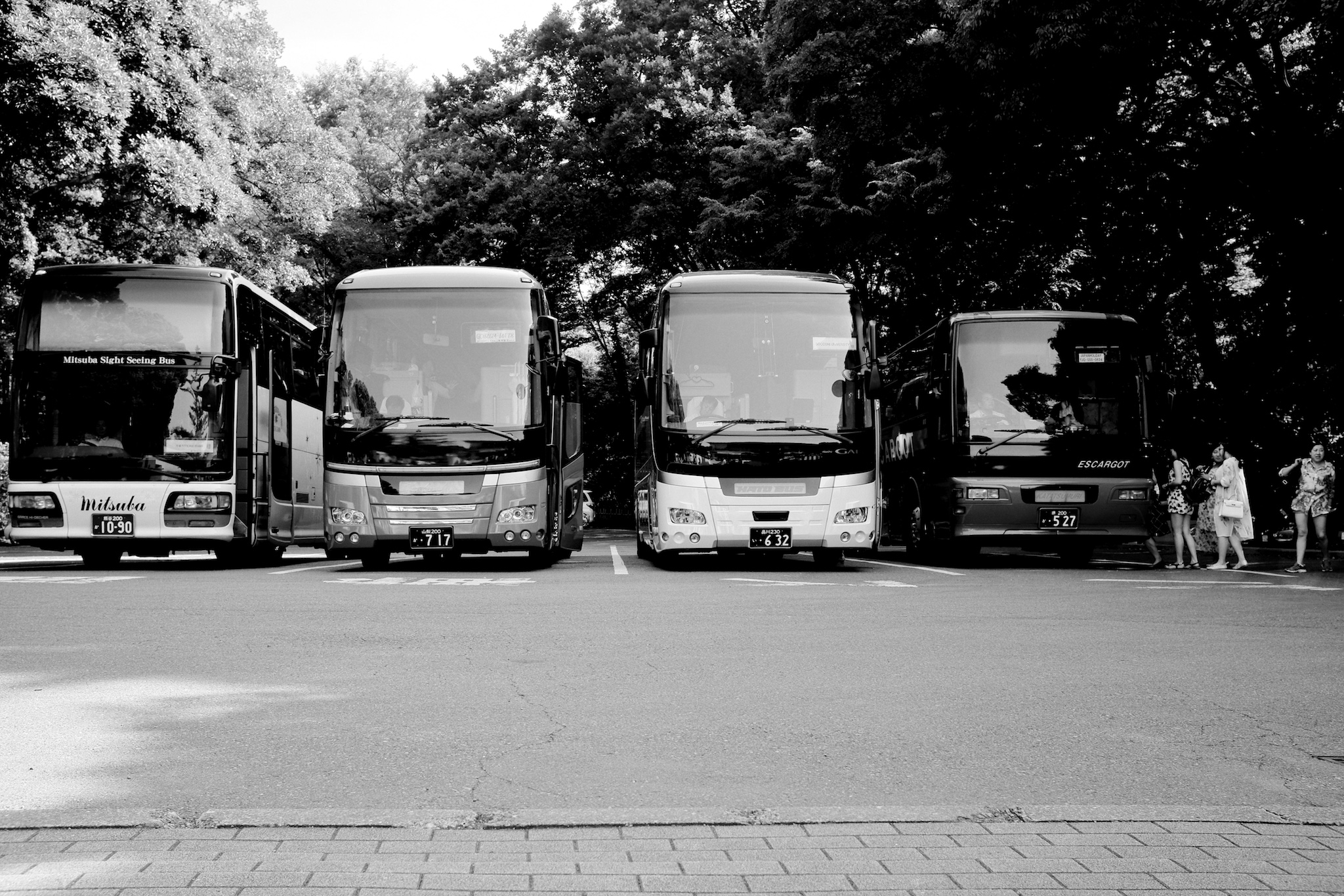 Tourist buses line up at Tokyo’s Meiji Shrine.