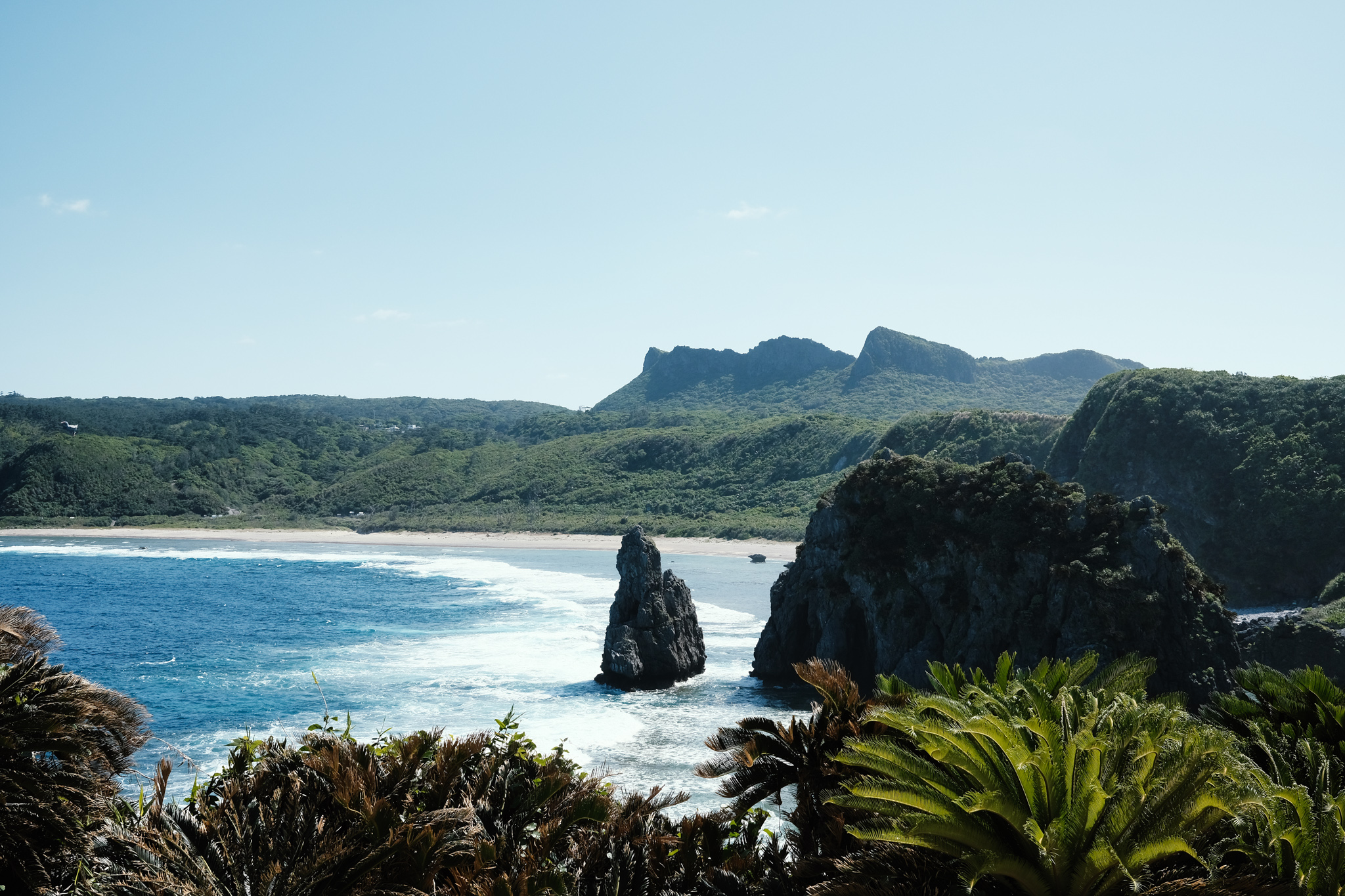 Drive north along Route 58 past isolated resort hotels and villages and you eventually reach Cape Hedo, the northernmost point of Okinawa island. A visit here is a to-do list item on many tourists’ itineraries; the Point has expansive views of the South China Sea to the west and the Pacific Ocean to the east. To the south, lies the lush green hilly topography of the island. The rugged clifftop landscape has been tamed somewhat with simple tourist amenities, paths and fencing, but the natural beauty of the national park it lies within and the power of the sea below the cliffs are nonetheless revitalising.